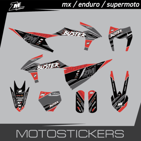 Понравившийся дизайн можно адаптировать для любой марки и модели техники. Выбор логотипов, стартового номера, имени и дополнительных надписей возможен при размещении заказа. Также при размещении заказа нужно указать год модели и тип мотоцикла.