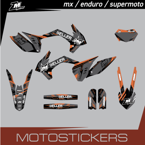Понравившийся дизайн можно адаптировать для любой марки и модели техники. Выбор логотипов, стартового номера, имени и дополнительных надписей возможен при размещении заказа. Также при размещении заказа нужно указать год модели и тип мотоцикла.