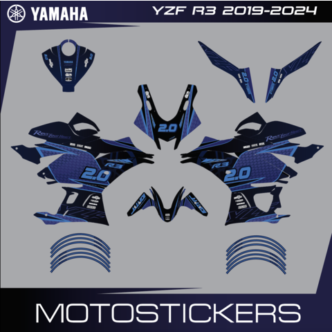 Комплект наклеек на Yamaha YZF R3 2019 2020 2021 2022 2023 2024.